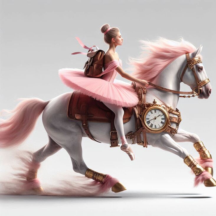 Now, if you've been following my pink-tutu-time-travel-adventures, you know my trusty steed, the gorgeous, pink-sparkling shire horse, Magic Meg, takes us to any point in time. We just pop on our elegant hats and hop aboard, and Magic Meg gallops us off to the most magnificent and historically dance-tastic times.