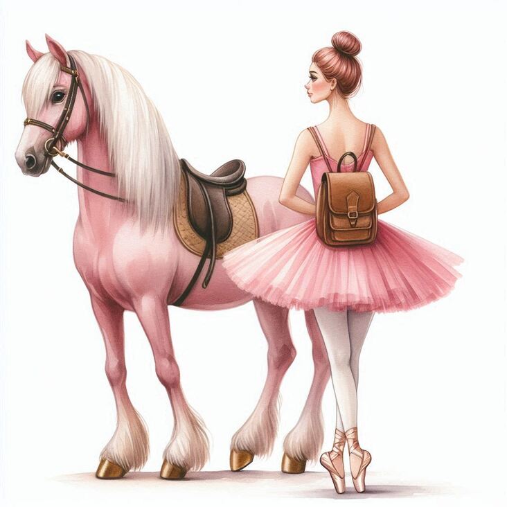 After packing my trusty leather rucksack full of notepads, sketching pencils, and some shimmering ballet ribbon for impromptu dance routines (because, you know, every traveller needs a bit of glitter), I climbed onto the back of my dear Magic Meg. She's a beautiful shire horse, with a sparkling pink coat, golden hooves, and a mane and tail like spun white silk β simply stunning, isn't she? With a wink and a nudge, we were off.