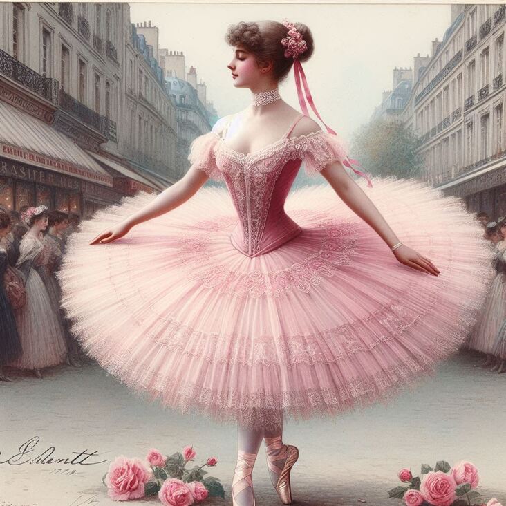 Now, let's travel together to the city that breathes ballet, Paris! We're here in the very heart of it all, where dance and fashion twirl together like the most delicate of waltzes.